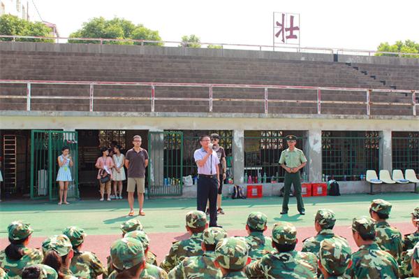 在检阅后,龚书记“代表学院师生,祝大家中秋快乐”。同时,龚书记也对新生提出了三点要求。一是在中秋来临之际要为自己的父母亲人带去祝福,并向家里保平安。二是要借军训这个契机,塑造自己的心性,不仅要锻炼出健康的身体,还要锻炼出过硬的思想和不屈的斗志。三是希望大家能不怕困难,不怕流血,以一名军人的姿态,以饱满的精神完成军训任务。